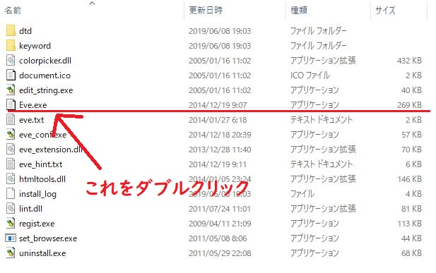 【2】その中にある 「Eve.exe」をダブルクリックします。