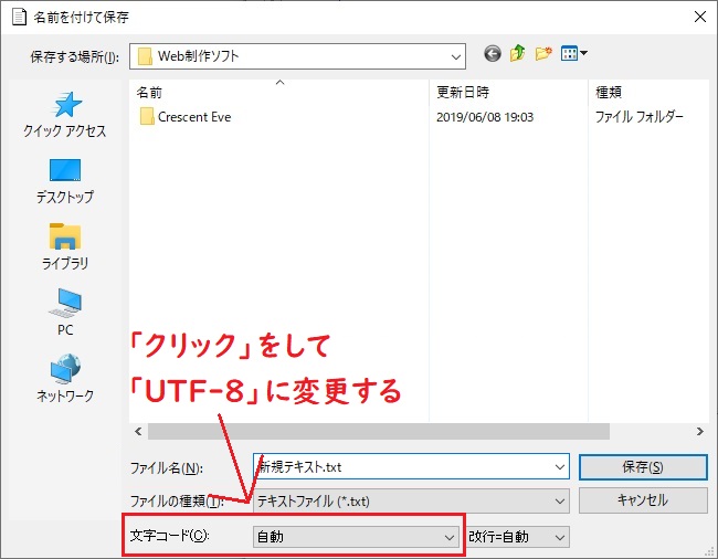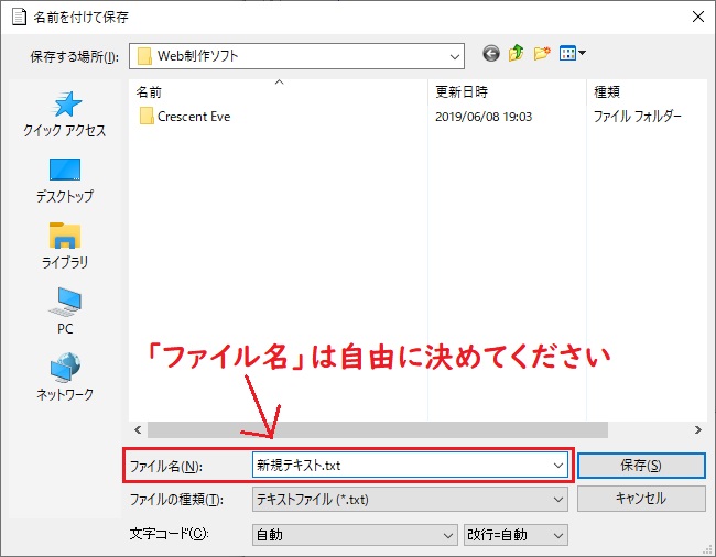 「ファイルの種類」は「HTMLファイル」としてください。