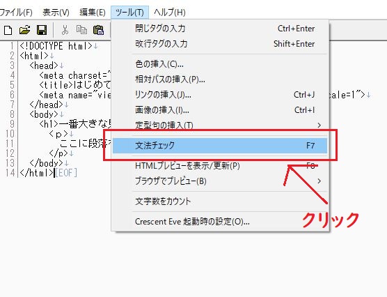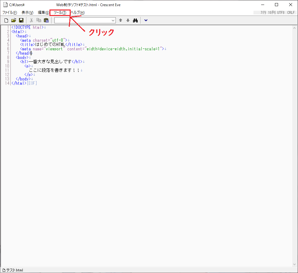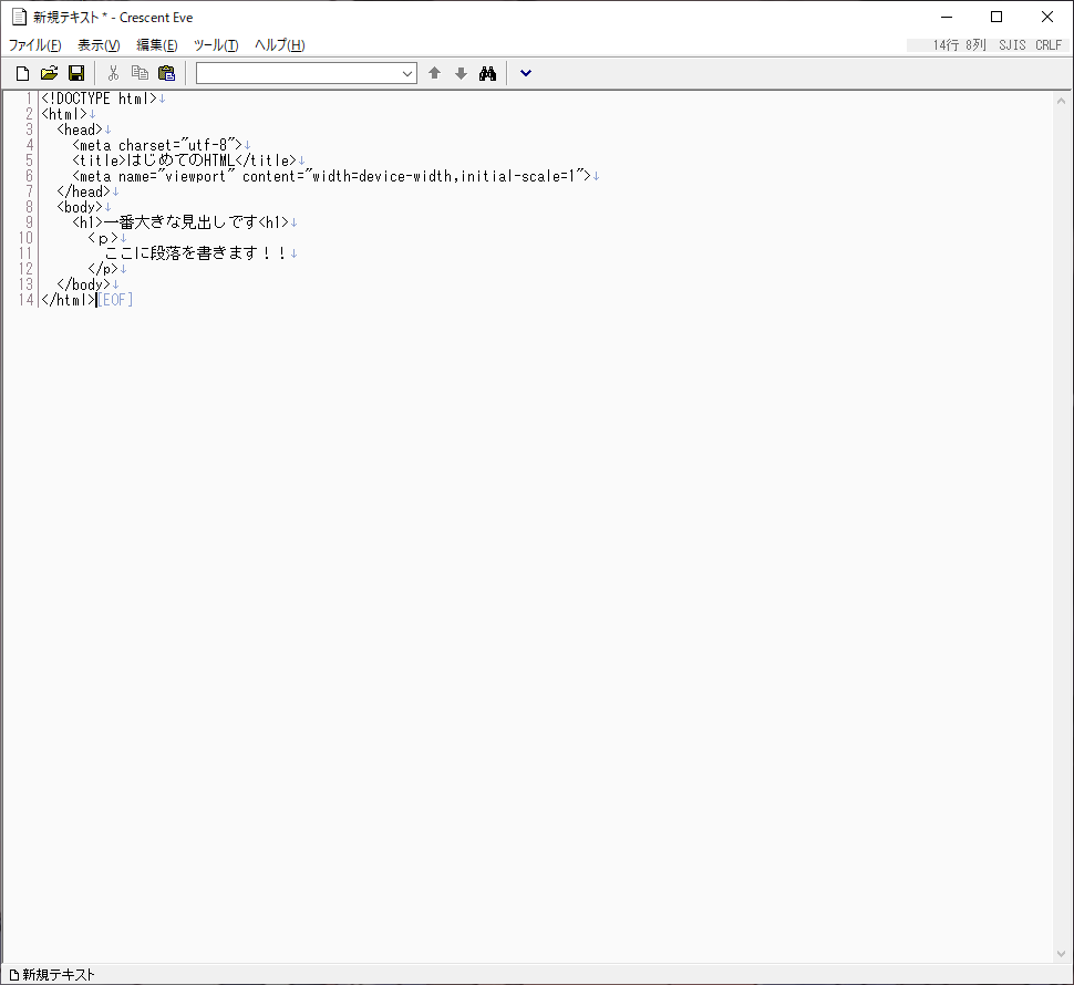 「Crescent Eve」というソフト(エディタ)を使ってWebページを作っていきます。