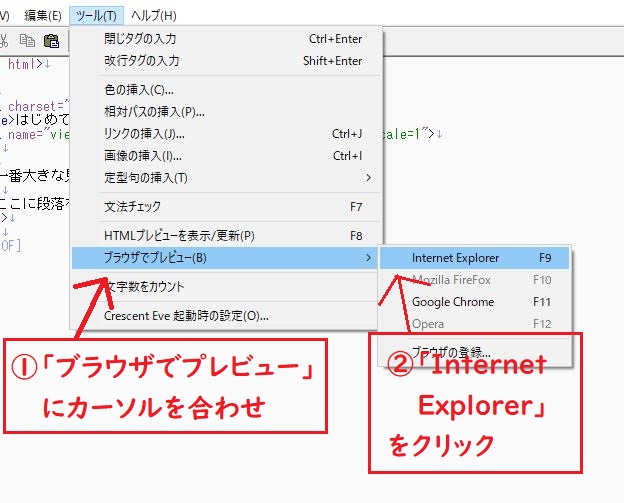 「ブラウザでプレビュー」にカーソルを合わせ、