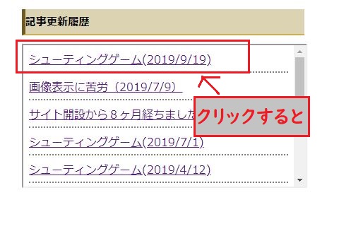 このようにすると新しいタブを開くことなく、現在のブラウザが「シューティングゲーム」という記事を開くことができます。